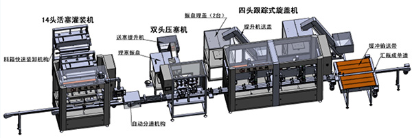 合作產品:14頭活塞灌裝機、雙頭壓塞機、四頭跟蹤式旋蓋機